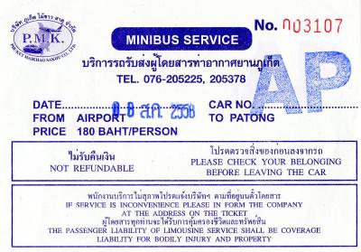 プーケット到着後の足を確保するには今まで、リムジンTAXIに乗車するか、Hotelに送迎依頼をするか、プーケットタウンのバスターミナルとを結ぶバスに乗るか、数少ないメーターTAXIを確保する必要がありましたが、2013年からパトンビーチ、カタ・カロンビーチと空港を結ぶお値打ちなミニバスの運行がスタートしました。