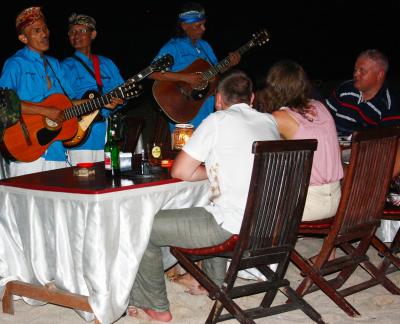 ビーチには数店舗に1組の割合で移動型バンドが居て、料理が揃うのを見計らって各テーブルを訪問してくるので、英語の歌(ボブ・マーリー)か、それぞれの出身国も曲を生演奏してくれますよ~(チップ必須)。- 旅行時期