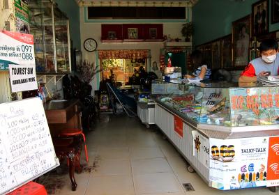 ホテルの正面には、レンタルサイクル屋台があり、ホテルを出て右手斜め先にランドリー&旅行代理店があります。