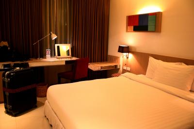 部屋は、日本のビジネスホテルの様な…狭いながらも工夫された作りで、スーツケースを広げる場所と、大きなテーブルが繋がっているので、ベッドや床が占領されることはありませんでした。