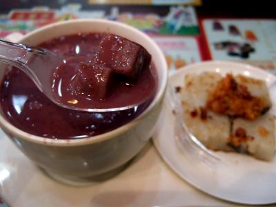 本当は鶏料理が有名らしいのですが、朝からはちょっと・・・・と思って、周りのお客さんがすすっていた麺やお粥と言った、朝食メニューを食べました。種類もかなり豊富なので迷ってしまいます(^^ゞ