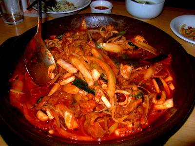 <イカと豚のプルコギ>と<イカの天婦羅>はボリューム満点ッ!