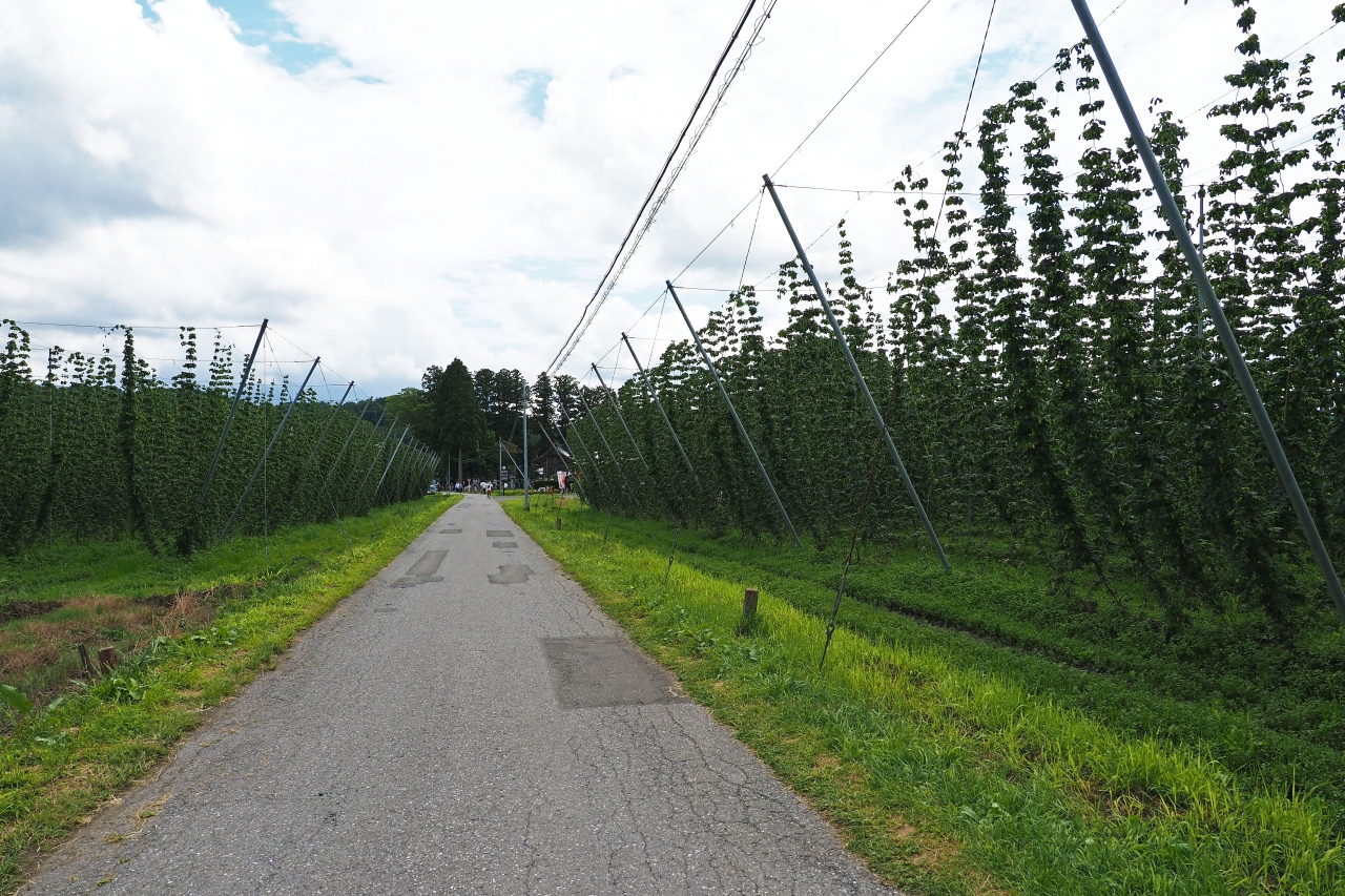 道路沿いなのでカッパ淵に行く途中に鑑賞できる:キリンのホップ畑