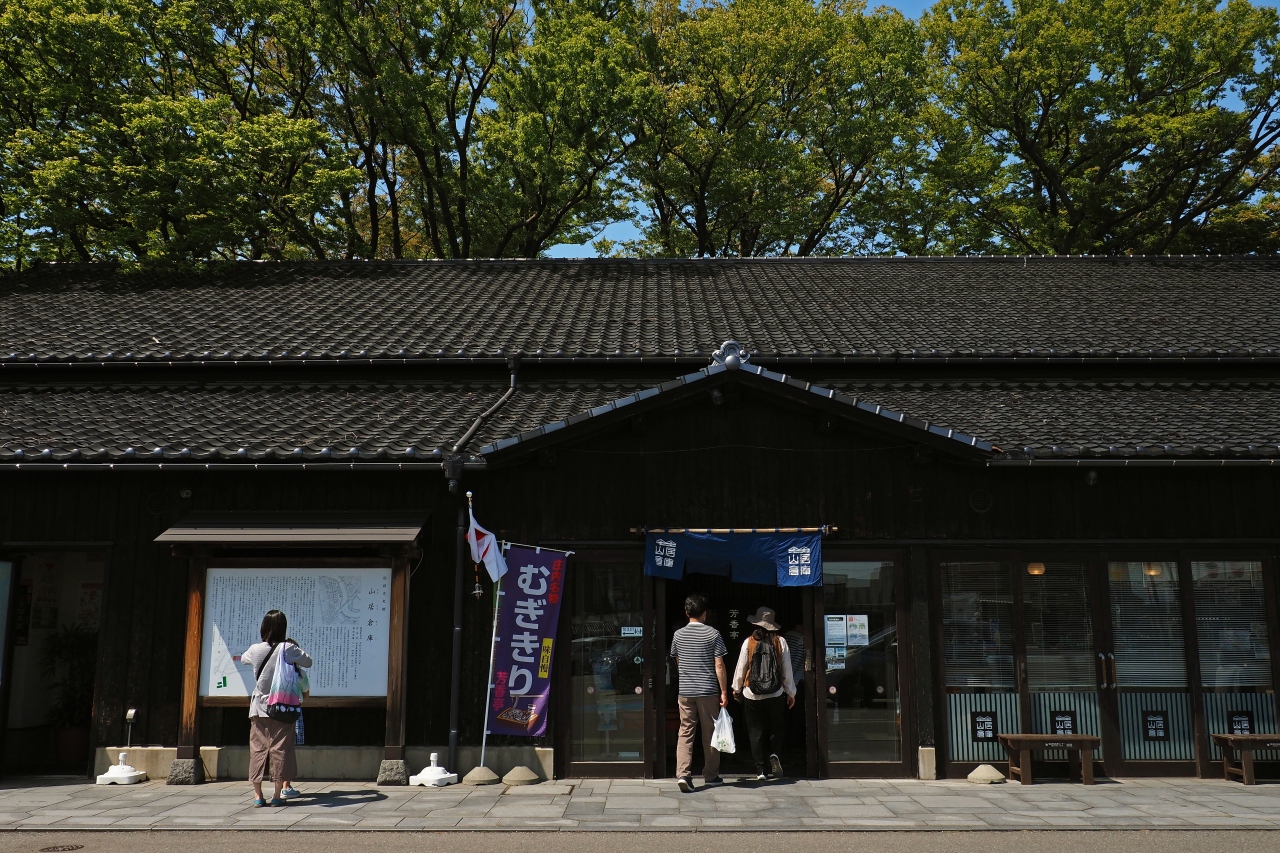 山居倉庫は1893年に旧藩主酒井家によって建てられた米保管倉庫で、白壁・土蔵づくり12棟からなる倉庫群のうち、9棟は現在も農業倉庫として使用されているそうです。