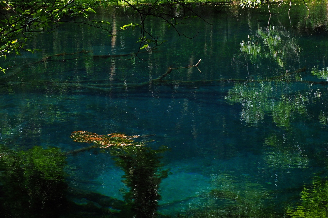 見る角度や場所によってブルーにもエメラルドグリーンにも見え、底からボコボコと水が湧いている場所があって、周囲を観察すると沈んでいる倒木があまりにきれいな形で残っていました。