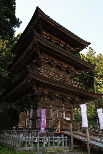 三重塔に安置されている大日如来坐像は非常に素晴らしく、私たち以外拝観する人もいなかったのでじっくり鑑賞できましたが、両手は腹前で金剛界大日の智拳印を結び、銅製の胸飾をつけていて、見事なつくりの透かし彫りにため息が出るばかりでした。- 旅行時期