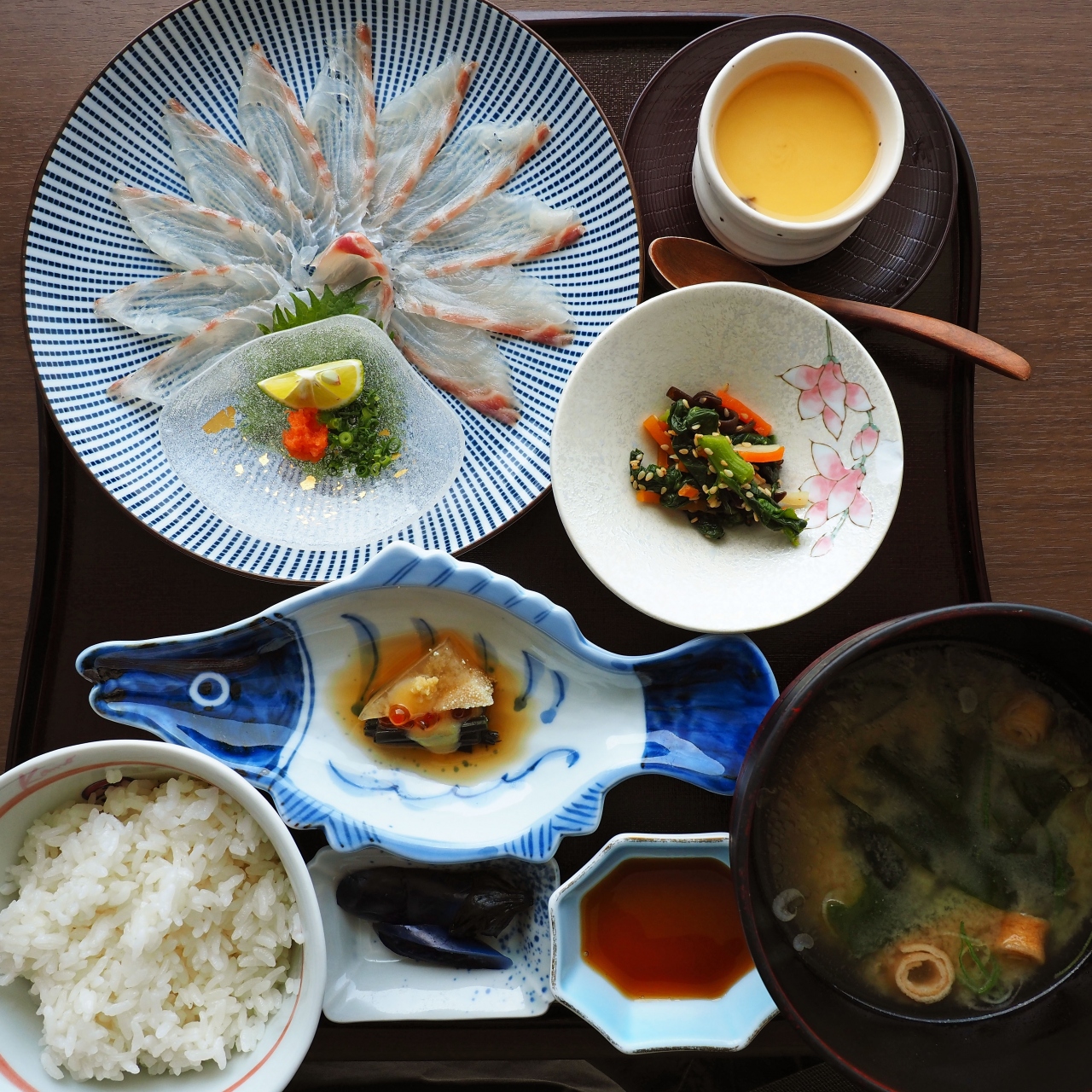 【荒崎定食】を食べてみたところ、鯛の刺身はすだちを絞ってモミジオロシ&ポン酢で食べるスタイルで美味しかったです。- 旅行時期