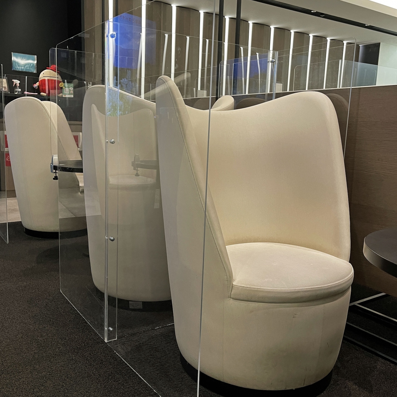 アクリル板仕切りが目立つのですが、座席数が多めなのか混雑している時間帯でも座れなかったことが1度も無いので、1番初めに立ち寄るラウンジです。- 旅行時期