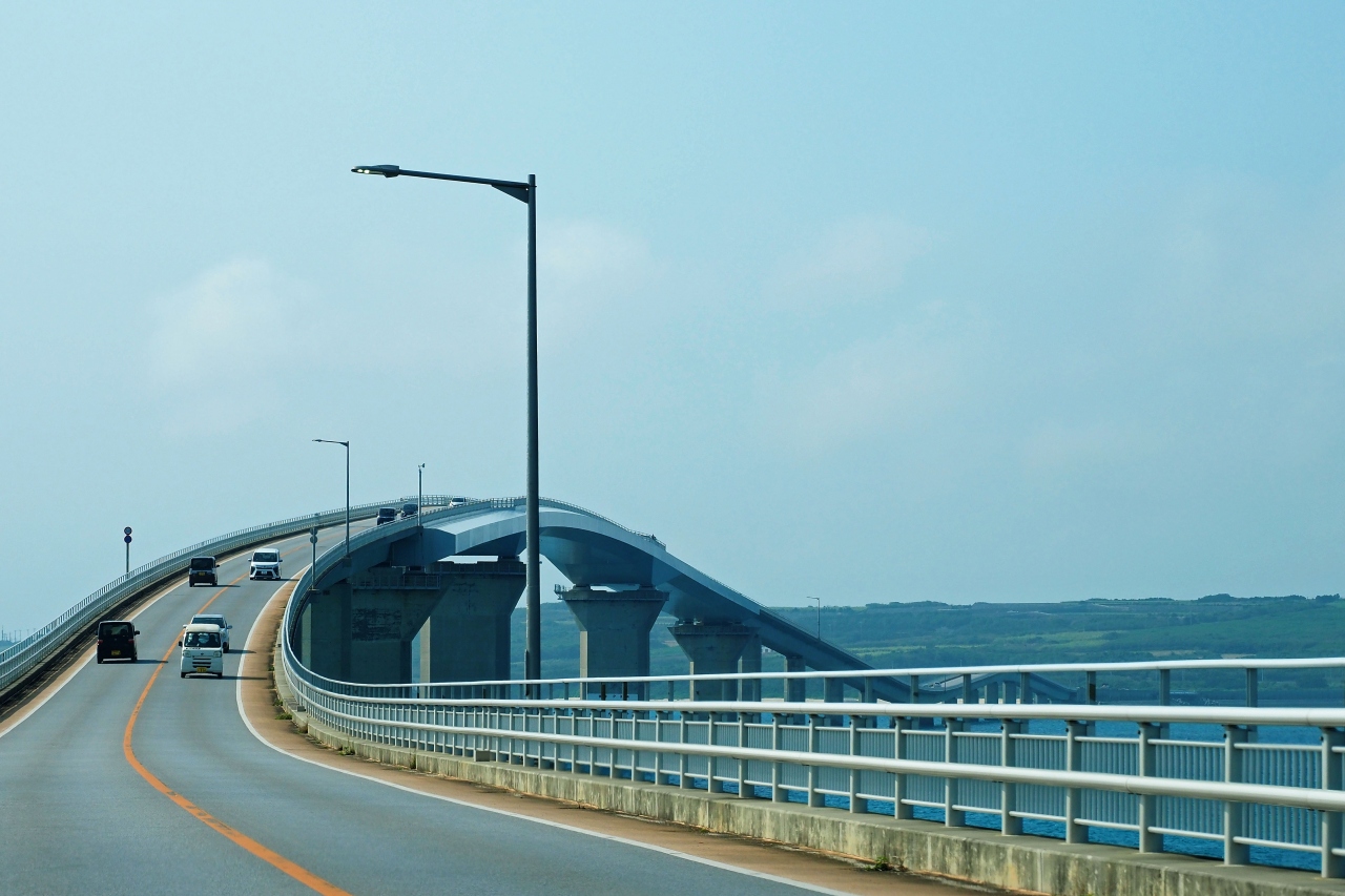 ここからの眺めは伊良部島の絶景スポットとして人気が高く、伊良部大橋と宮古ブルーの海を存分に鑑賞できますが、風がとても強いので帽子など飛ばされないようにご注意を。