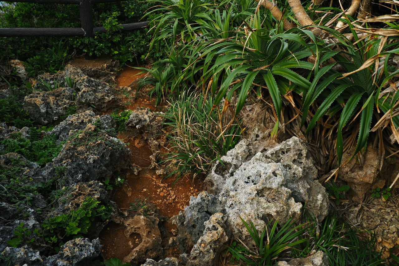 東平安名崎の入口から灯台に続く道を進んでいくと、最初に巨大な岩が目を惹きます。
