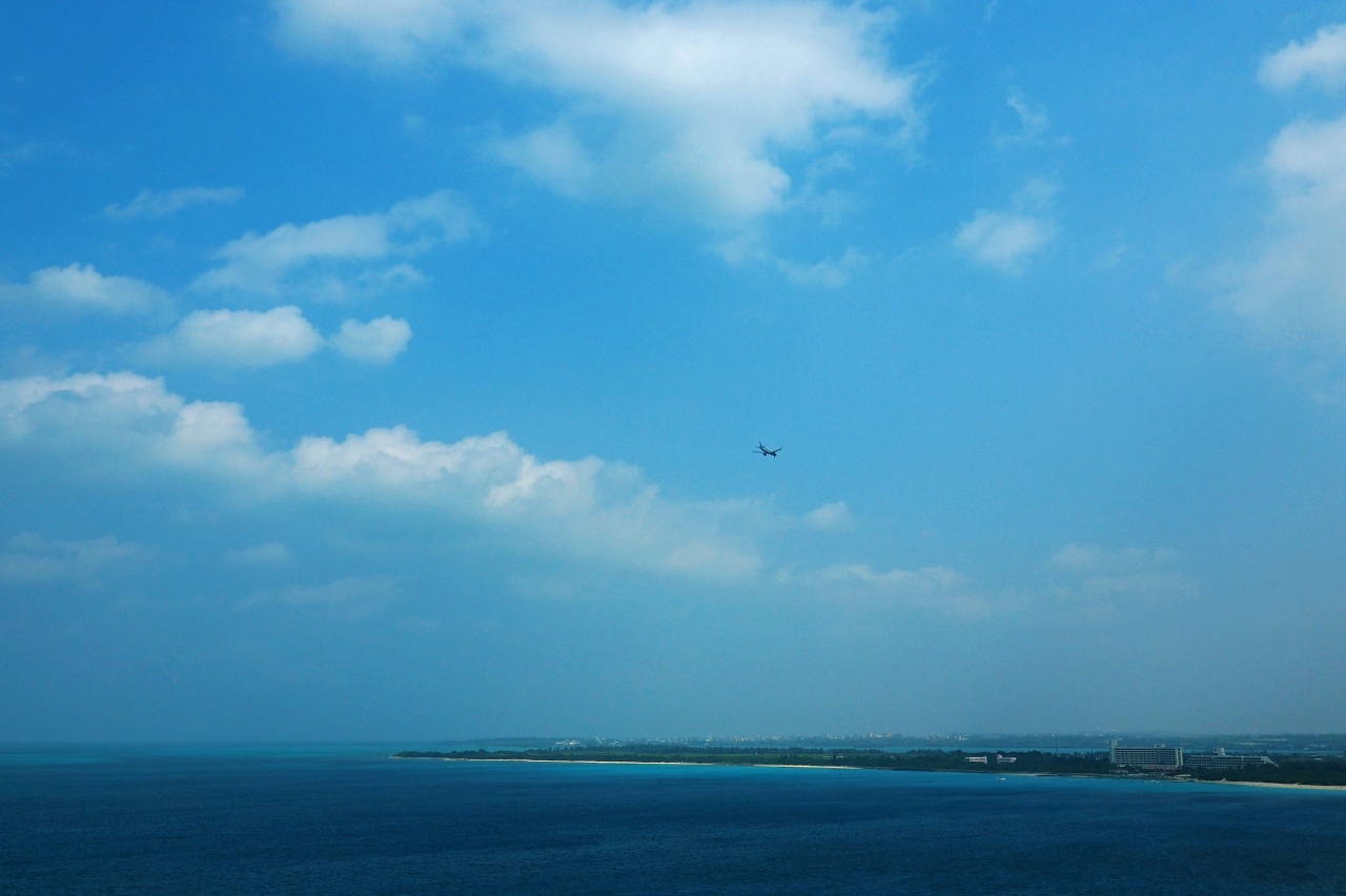 右側には宮古島から来間島へ渡る際に通ってきた来間大橋が一望でき、正面には対岸の東洋一美しいといわれる与那覇前浜ビーチの白い砂浜があり、大きな音が聞こえたので空を見上げると宮古空港に降下中の飛行機を見ることが出来ました。- 旅行時期