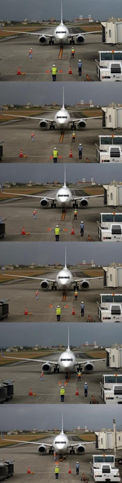 タイミングが合えば、到着機の誘導を制限区域内の大窓から見ることが出来る:宮古空港