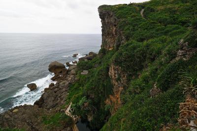 2019年にサシバのモチーフが撤去された展望台の先には、岸壁ギリギリまで海に近づける場所がありますが、空洞だらけのゴツゴツした岩が点在していて、足場がとても悪いのでビーサンだと危険です。