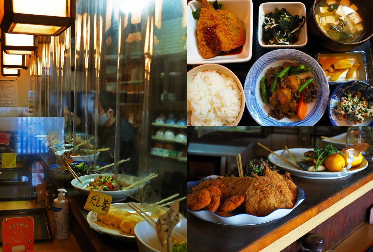 おふくろの味と看板に書かれているものの店主の男性1人で営業していて、正月休み明け初日でいつもより品数が少なかったそうですが、カウンターには9品のおばんざい・フライ3種(チキン・鯵・コロッケ)・焼魚(鯖・鮭)が並んでいて迷ってしまいました。