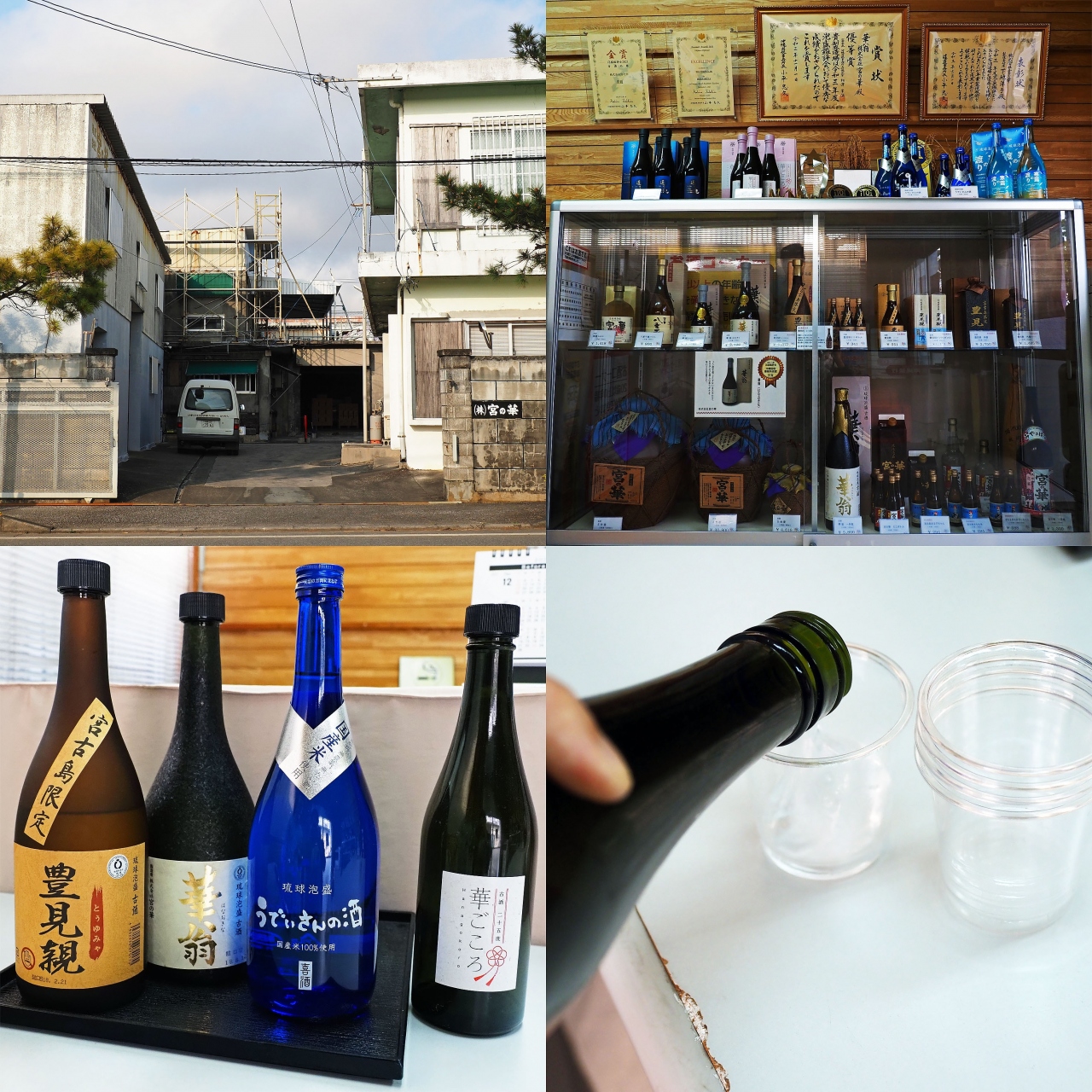 販売所も兼ねた事務所を訪ねると、コロナ禍以降工場見学は中止しているけど、事務所での試飲は可能だそうで豊見親・華翁・うでいさんの酒・華ごころの4本を出してもらいました。