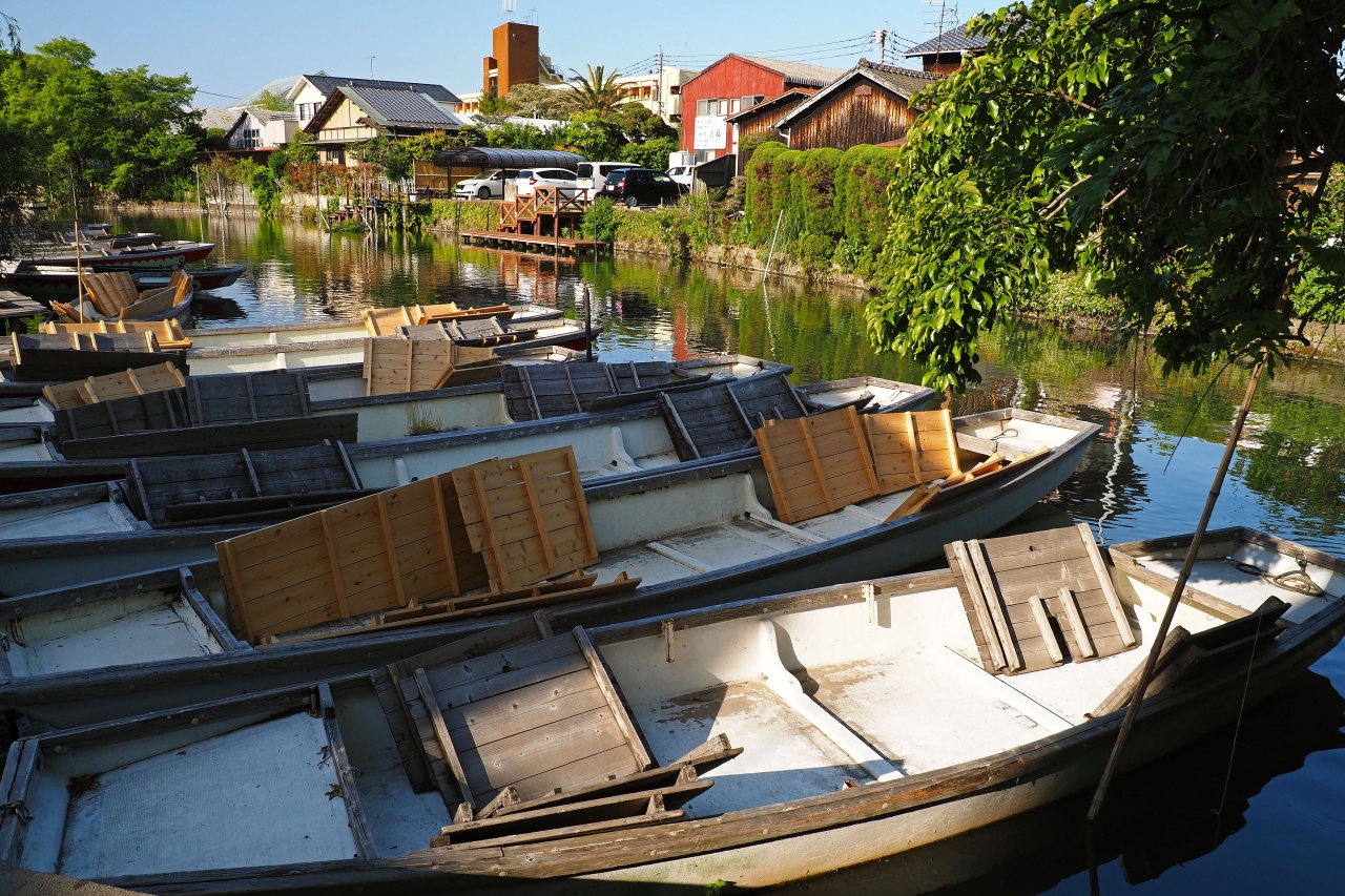 訪れた時間帯が夕刻だったので片付け作業を始める舟もあったため、ゆっくり水路沿いを散策したのですが、水路沿いには鰻屋が多くて夕食時に向けて準備が忙しいらしく、各所から鰻を焼く香ばしい匂いが漂っていました。- 旅行時期