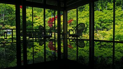 丁寧に磨かれた漆塗りのテーブルには、窓越しの新緑が写り込むように配置されていて、フォトジェニックスポットでの撮影を楽しみました。