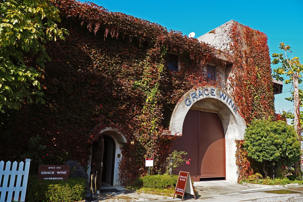 1877年に誕生した現存する日本最古の老舗ワイナリーで、鮮やかなオレンジ色の建物が目印です。