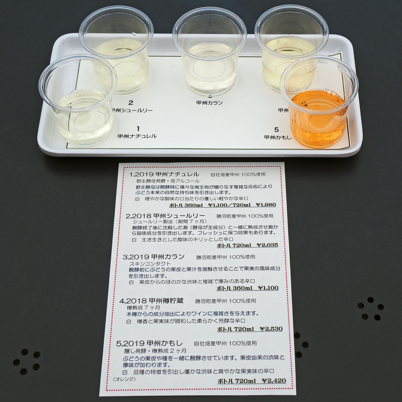 1913年の創業のワイナリーで、甲州・マスカットベーリーA、カベルネソーヴィニョン・シャルドネを自社畑で植えており、2007年から基本的に畑に肥料を与えず、耕さず、雑草を生やしたままにし、自然に即した気候風土に合わせた栽培を行っています。