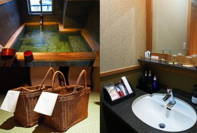 今回はアニバーサリー旅行だったので、和室8畳+ローベッド+自家源泉風呂付きの“灯りとりの湯(禁煙)”に宿泊したのですが、高級感ある造りで至福の時間を過ごすことが出来ました。
