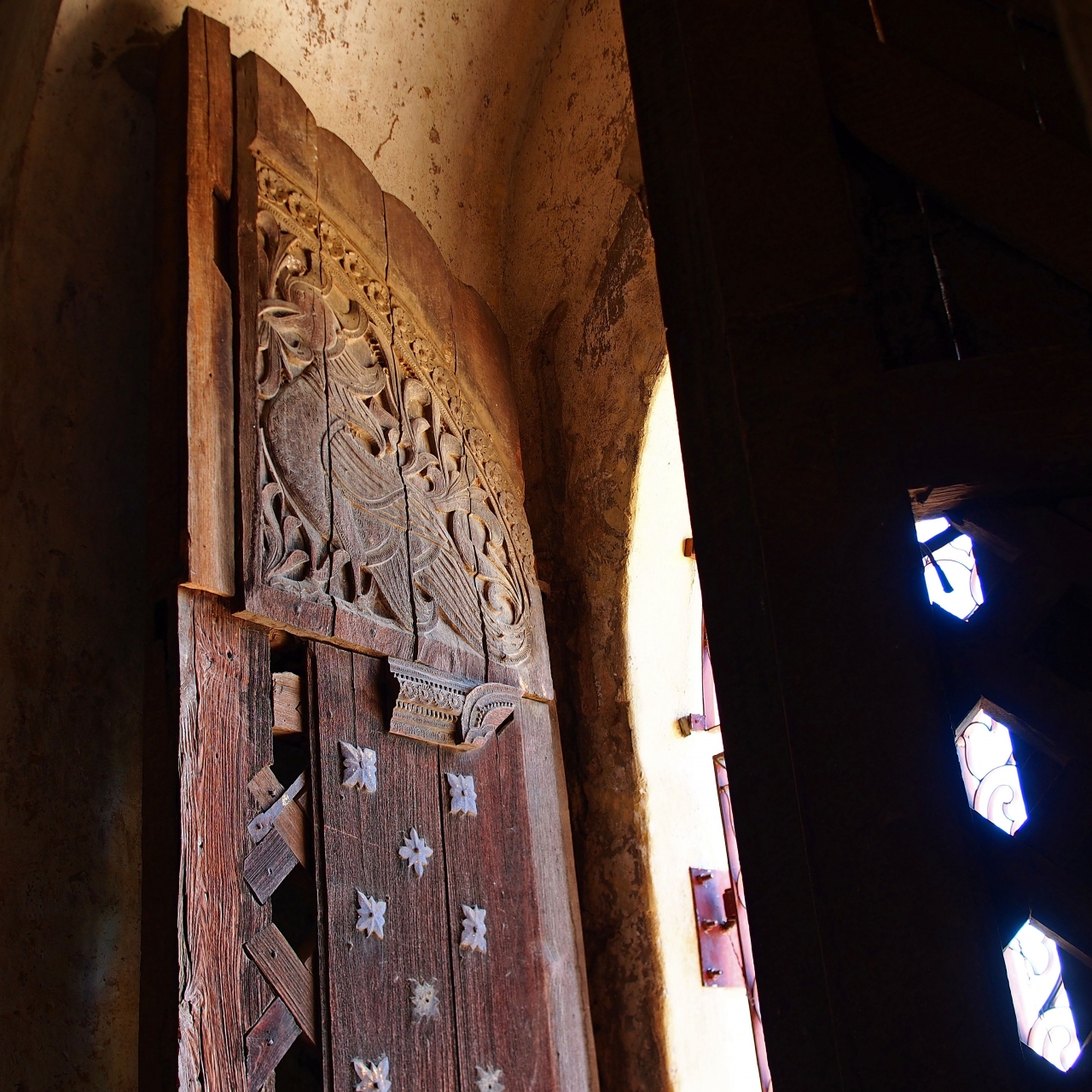 ゴープラムを思わせる形状をした高さ43mの仏塔が目を惹くバガンでも珍しいスタイルで、外壁の仏像たちはマンションのように1体1室ずつに納められており、堂内には1体の大きな仏像が、物憂げな表情で見据えていて迫力を感じます。