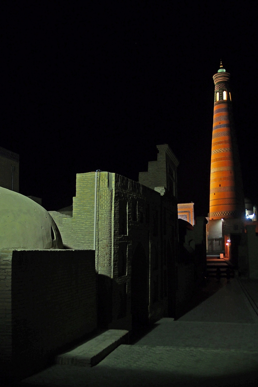 イチャン・カラの露天商や土産物屋は遅くても22:00過ぎには片付け始めるのですが、街外れに行けば行くほど店じまいが早く、露天商らが姿を消した後はシーン…と静まり返り、まるで映画のセットのよう非現実的な街並みが広がっていました。