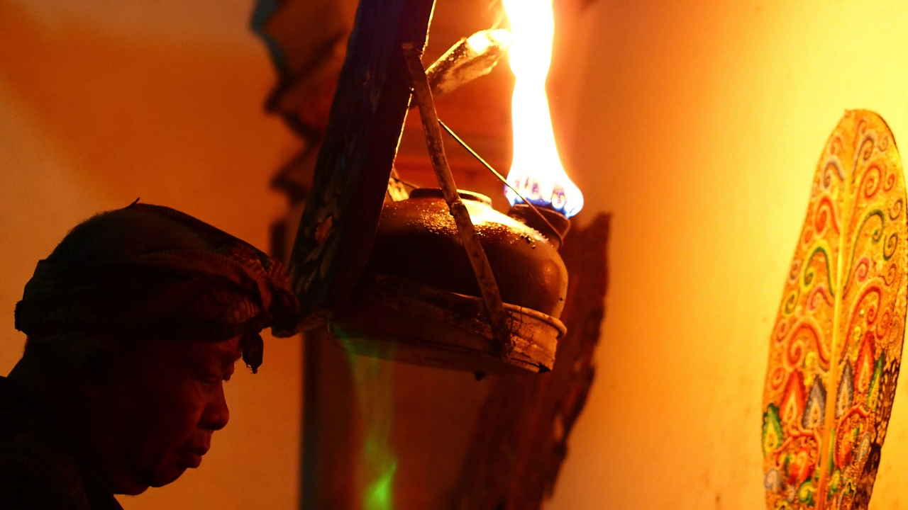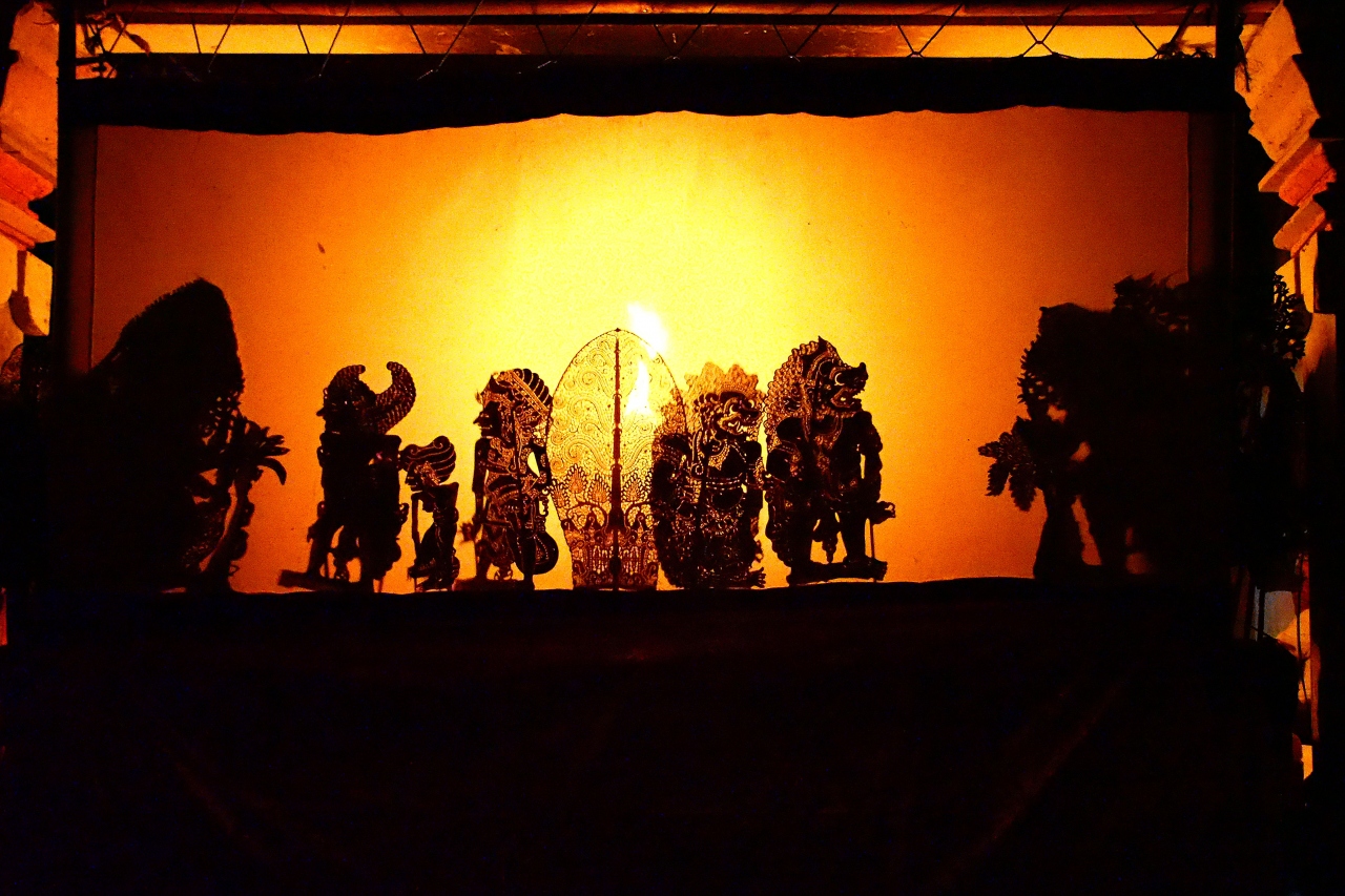 インド叙事詩…Ramayanaからエピソードを、牛の皮で作られた人形を1人の演者が声色を変えながら操る、伝統的な影絵芝居ワヤン・クリ。