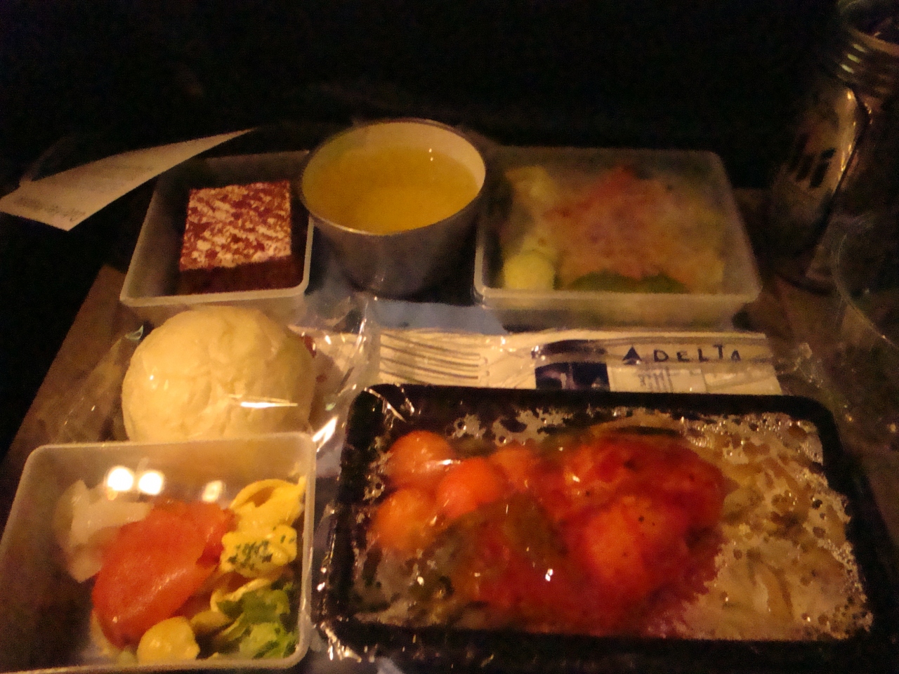 成田空港でチェックインの際にビジネスが空いているということで長いフライトは疲れるので同僚とビジネスに変更しました。エアカナダは当日空いていればプラス7万から10万くらい出せばアップグレードできるみたいでその日は確か7万くらいでした。機内食の味は普通ですが始めに出てくるナッツは温かくてとってもおいしいです。食後にチーズも出てきてそれに合う甘い赤ワインもおいしかったです。映画は日本語字幕はありませんでしたが何本か日本の映画はありました。