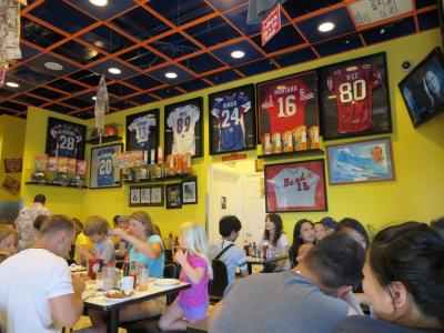 いつも平日の3時空時くらいにに行っているので並ばずに入れます。味よりも何よりもアメリカンな感じが好きです。高いけれど楽しいからいい!!おすすめはてんぷらロールです。あと、パンもおいしいいので好きです。