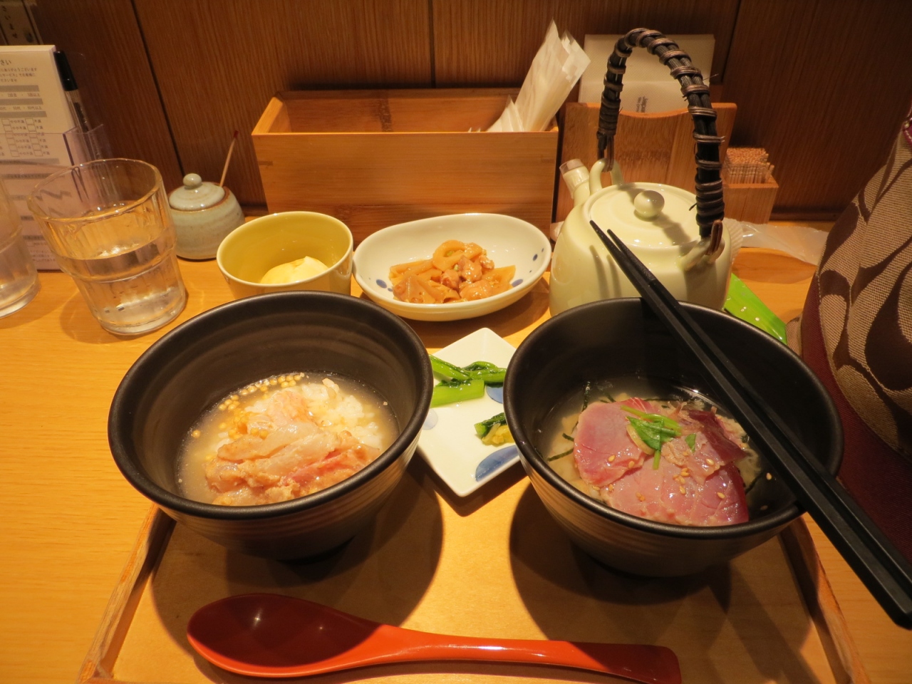 日本を離れる前においしいお茶漬け食べて出発します。早くておいしいので利用することが増えました。店内が狭いのでスーツケースがあるとちょっと大変です。