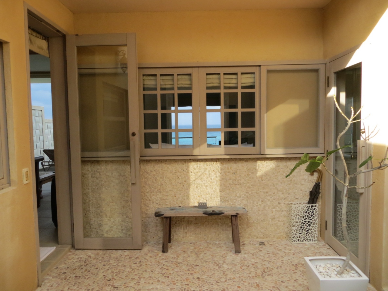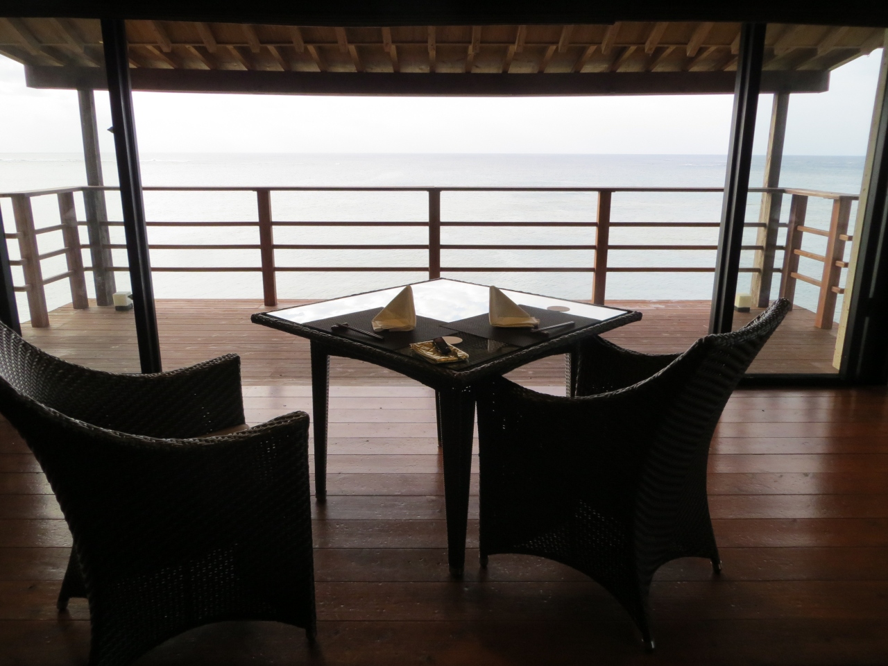 施設は何も言うことなし。ただただ癒しです。ずっと海を眺めているだけで時間がたっていきます。部屋には2リットルの水。コーヒー紅茶お茶、宿泊者が自由に使える冷蔵庫には無料の水、無料のペリエ、無料のアイス、他には部屋には無い調味料が沢山あります。