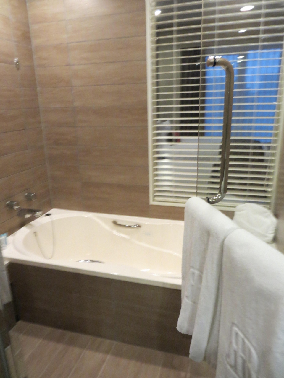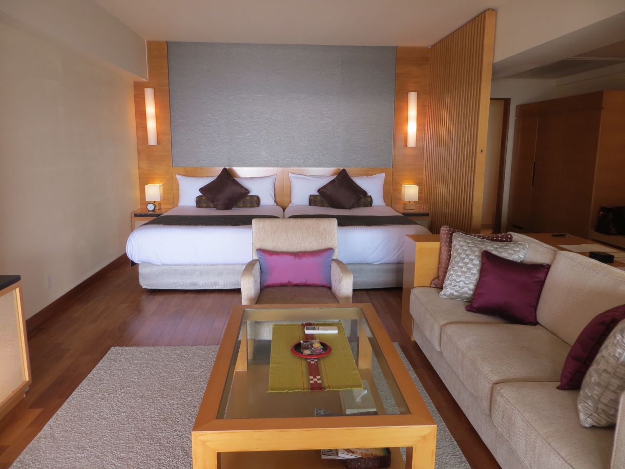 チェックインのときに広い部屋にアップグレードしてあることを聞きました。お風呂は広くアメニティーにはロクシタン、疲れた体には最高の入浴剤、ハーブティーにおいしいコーヒーなどなにをとっても最高でした。加湿器や空気清浄機もあり文句なしです。海外の古いコンドミニアムに宿泊が多い私にとってはとてもきれいなホテルで、スタッフの方も対応もとてもすばらしかったです。室内はしかっり掃除がしてありベットも気持ちがよくてすぐに寝てしまいました。