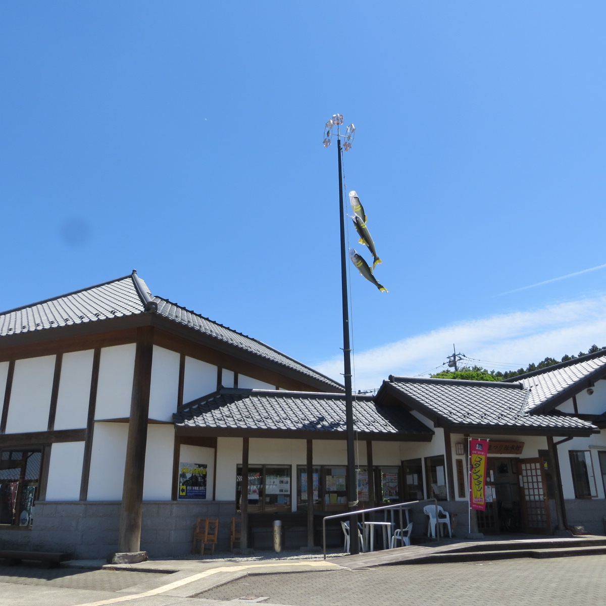 駐車場がとっても広いです。与一伝承館、多目的ホール、竹のギャラリー、レストラン館、農産物直売館、加工物産品館、情報館、とにかくたくさんあります。食べてはいませんがアイス屋さんに鮎味のジェラードがありました。