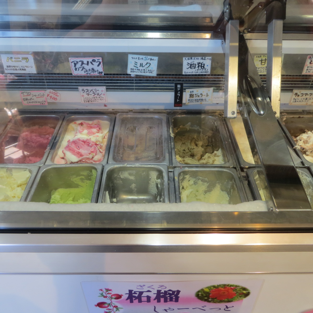 駐車場はとっても広いというわけではなく、休日なんかは混むだろうなと思いました。レストランに、特産物、農産物が売っていて種類もそれなりにありました。観光案内の中にアイス屋さんがあり珍しい味のアイスがたくさんあったのでぜひ行ってください。