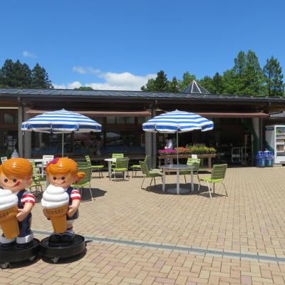 平日の夕方だったので直売店の方はもうあまり人がいなくお店も終わりかけていました。もう少し早く来ていたらお野菜など買えたかなと思います。ファームレストランにはアイスとパンが売っていました。奥には旧青木家那須別荘邸がありました。