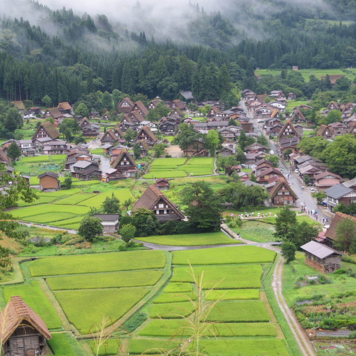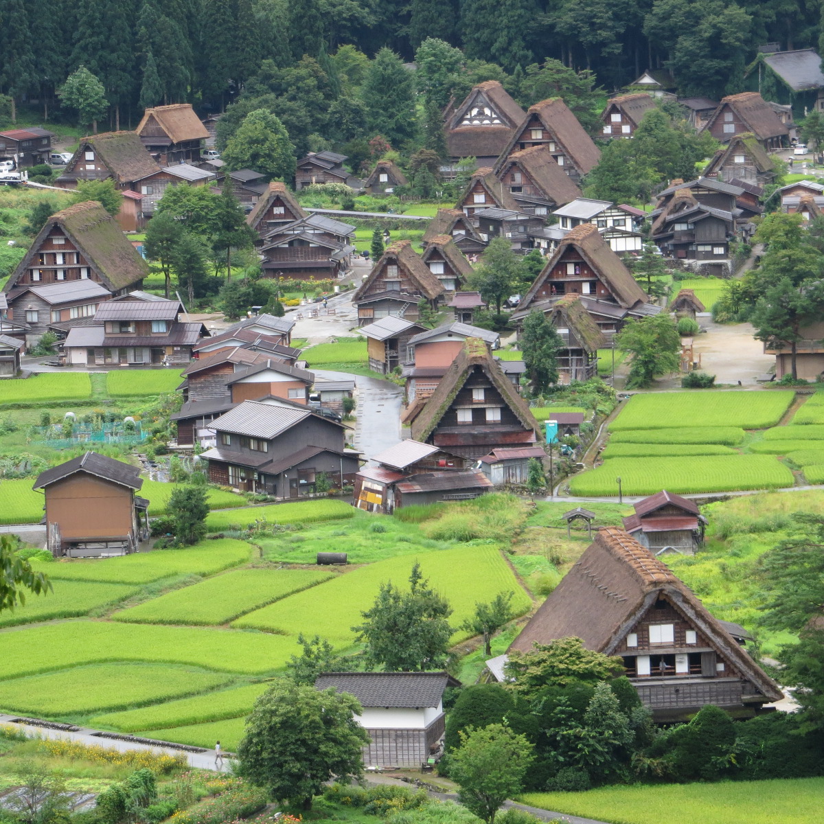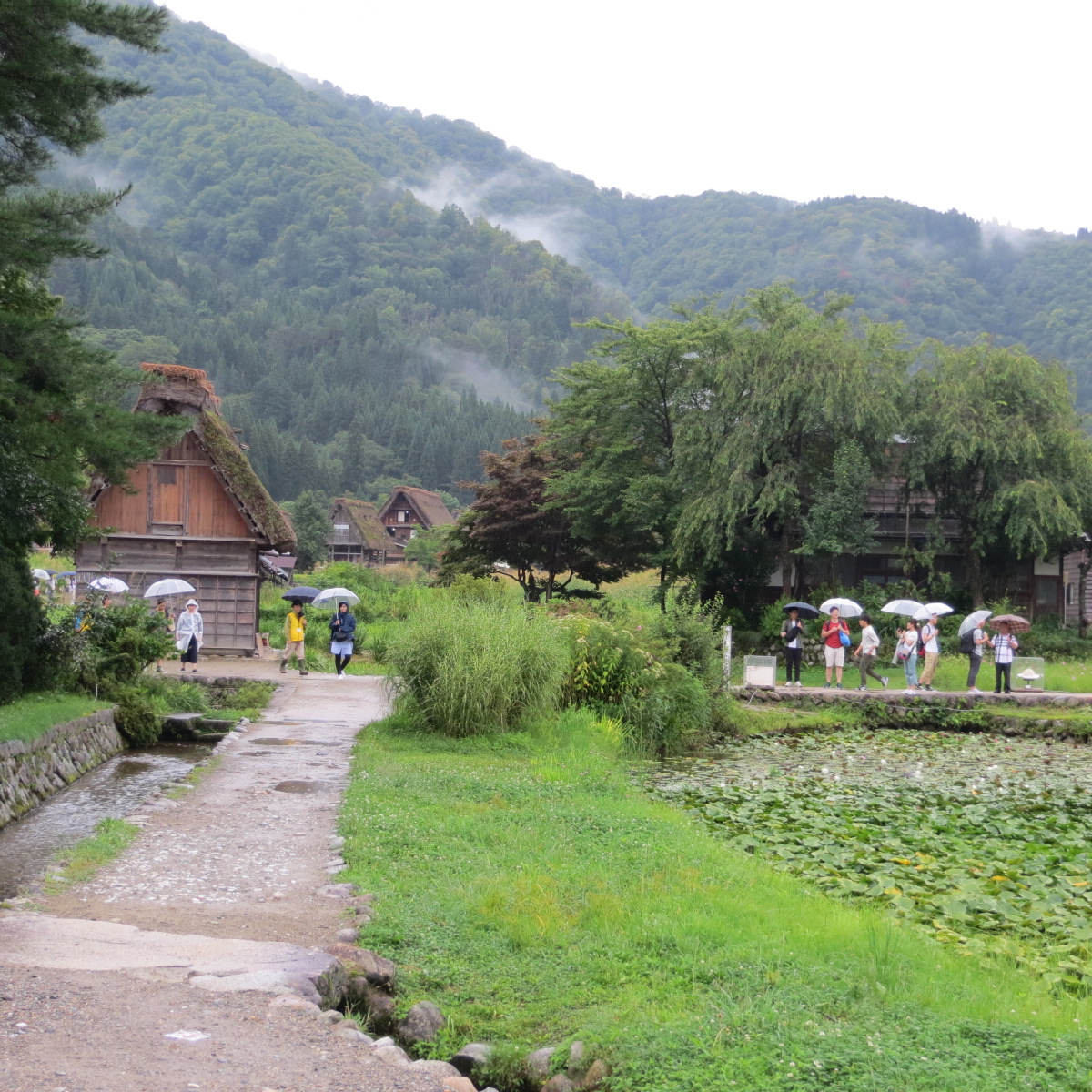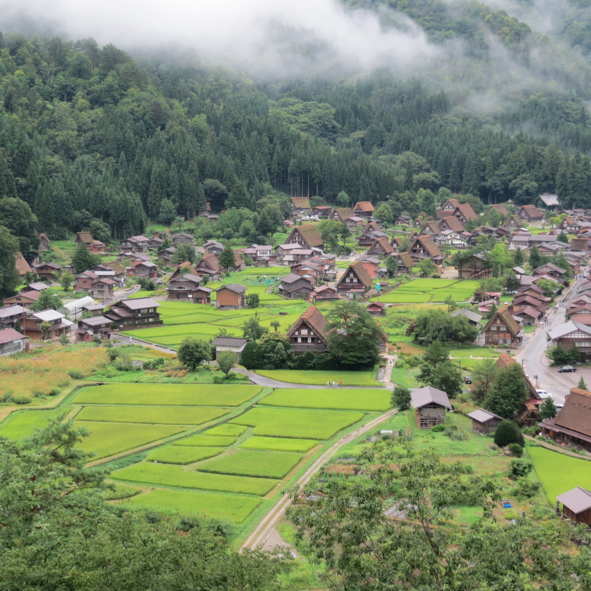 駐車場から歩いて5分くらいです。とにかく昔ながらの素敵な街並みです。お土産屋さんや食堂もあります。歩いているだけでパワーを感じられるそんな場所です。高台からみる白川郷は圧巻でチャンスがあれば冬にも行ってみたいです。