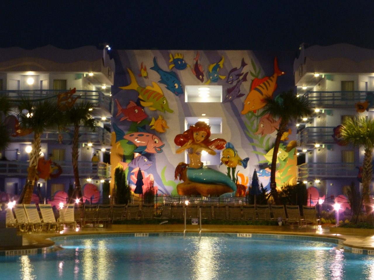 ウォルト・ディズニー・ワールドの直営ホテルの中でも最も新しく、かなり低予算で宿泊できるきれいなホテル。直営ホテルの特典である、空港送迎に加えて、各パークへのバスも、ポップセンチュリーとの2箇所でバスが運行されているため、他のホテルのように、何箇所も途中停止することも、満員になることも心配ない。