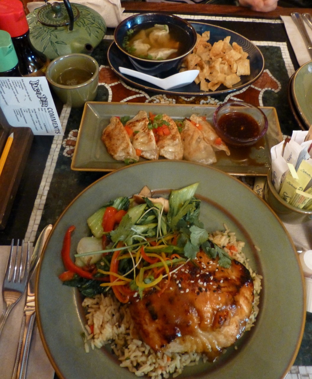 WDWのアニマルキングダムにあるアジアンフュージョン料理。店内は仏像などの置物がたくさん置かれ、アジアンな雰囲気満点。料理はアジアの特定の国の料理ではなく、アジアの調味料をうまく使った創作料理がメイン。サーモンの味噌焼きは日本人好みの味付けで迷ったら間違いない選択。餃子、ワンタンスープも注文したが、日本のそれとは違い、東南アジアの味付けの中華な感じ。デザートは揚げワンタンがおすすめ。その他の料理も食べてみたいと思うくらい、どの料理も間違がなかった。