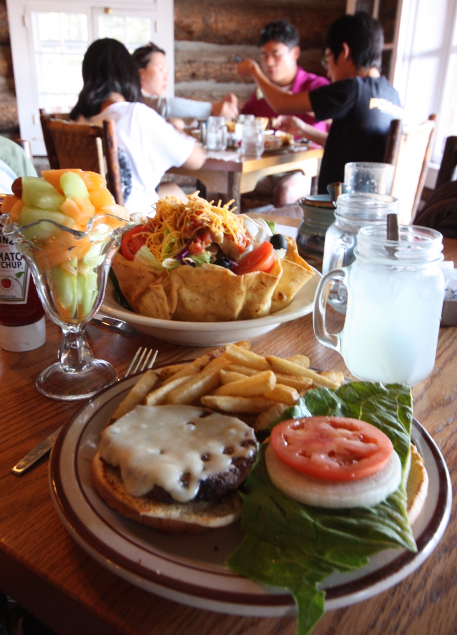 イエローストーン国立公園の北東の外れにあるルーズベルトロッジ。ここのオススメはパンケーキ・・・とのことだったが、グリズリーvsオオカミに夢中になりすぎて既に昼食の時間。パンケーキがなかったため、タコスとハンバーガーを注文。タコスはボリューム満点だったが、味も最高!飽きることなくペロリといけた。