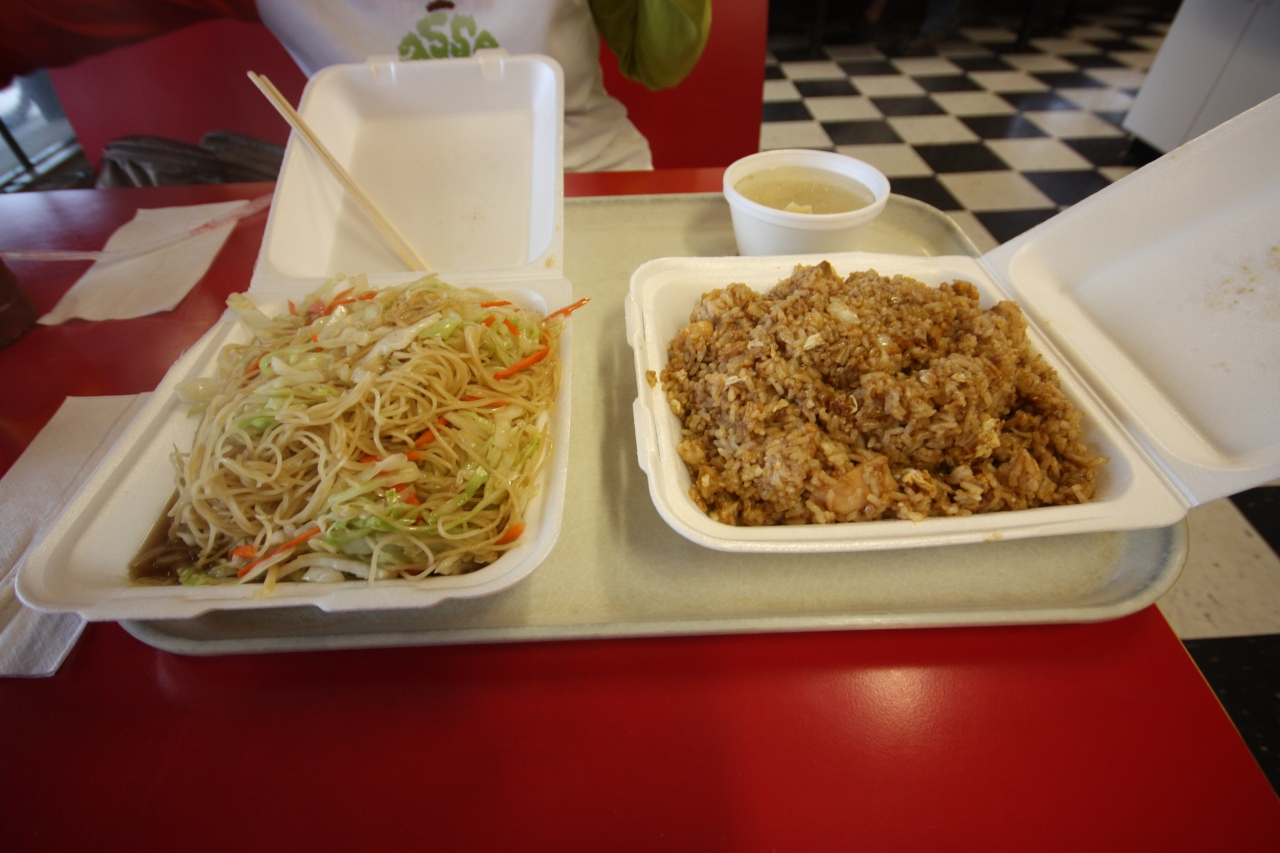 旅も終盤に向かい、連日のハンバーガー、肉料理に飽きてきたので、ふと見つけた中華料理店へ。場所はイエローストーン国立公園の北側入口の町ガーディナーの中心部。パンダの看板に惹かれて、ラーメンとチャーハンを注文。すると、想像をはるかに超える「ラーメン」と「チャーハン」が・・・。味がどうこうではなく、今まで食べてきたラーメン、チャーハンとのギャップに戸惑った。不味くはないし、食べられるのだが、中華ではないような・・・・。
