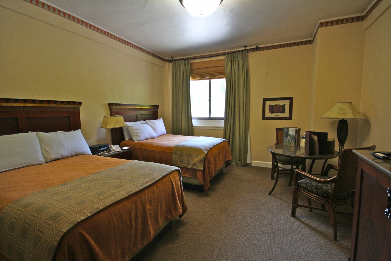 ロビー、ラウンジ、テラスなど寛ぐ場所も充実し、テラスには野鳥や鹿などの野生動物も遊びに来る。少し歩けばマーセド川でのんびりも可能。レストランも高級ダイニングとお手軽なバーがあり、リゾート滞在にも問題なし。ヨセミテのアクティビティを楽しむにしても、ヨセミテロッジまではバスで10分もかからない。また、コンシェルジュも常駐し、ツアーも申し込み可能。