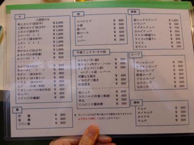 水沢公園の近くにある焼肉屋さん。店内はお座敷とテーブル、カウンター(2人用)で、ギュウギュウに詰めても20人強のこじんまりとした、昔ながらの造り。今回はゴルデンウィーク中で、繁忙期のため予約のみの営業となっていた。前日に電話したが既に満席。諦めきれずキャンセル待ち(正式には受け付けていないが何度か電話し確認)を行い、当日直前に予約ゲット!