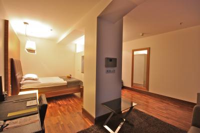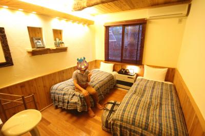 部屋もリビングとベッドルームの2部屋で、座椅子もありとてもくつろげる。化粧室は共用だが、あまり気にならない。