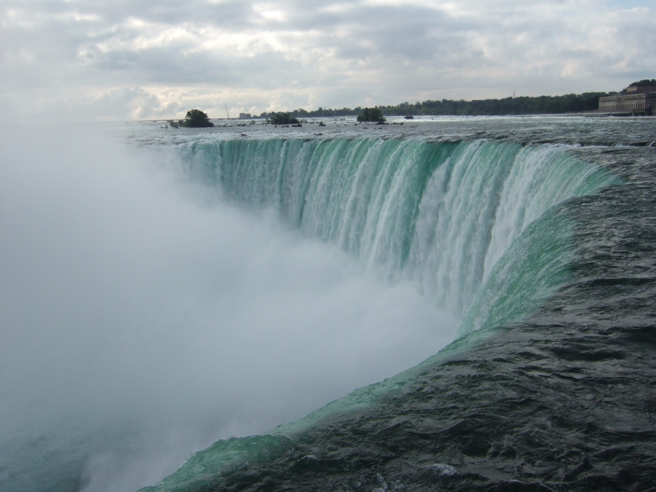 ナイアガラの滝のすぐ目の前に位置し、手を伸ばせば届きそうなところから一気に滝が落ちて行く。