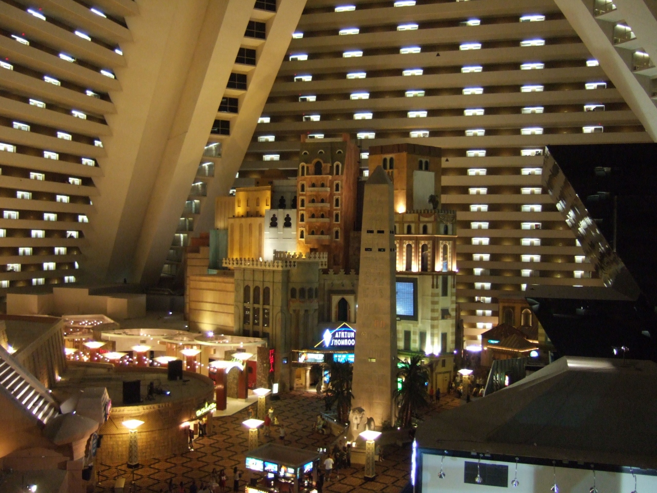 部屋がピラミッドの外壁にそって設置されており、内部は広々としたピラミッド型の空間。
