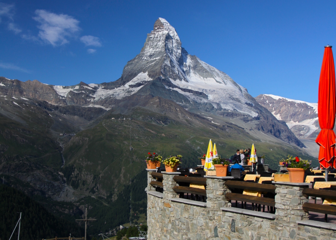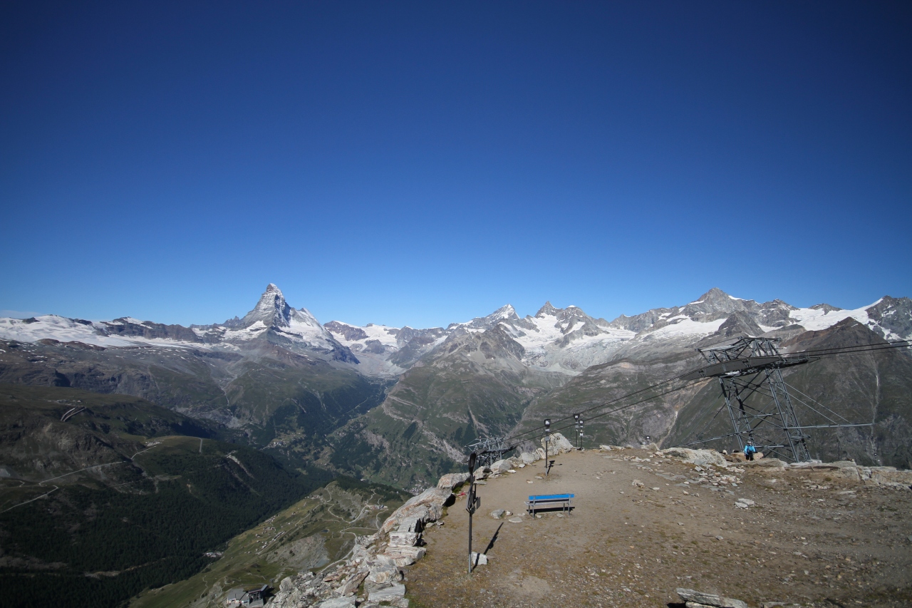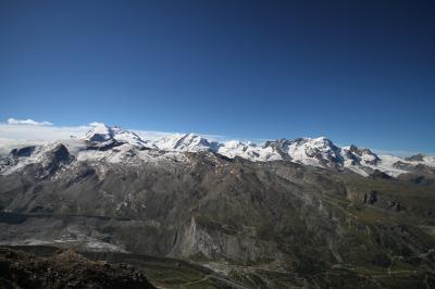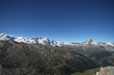 - マッターホルンに加え、ゴルナー氷河、モンテローザー、リスカムを最高のロケーションで一望!