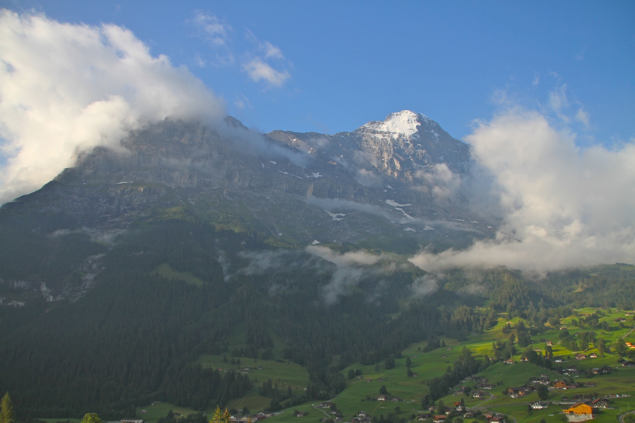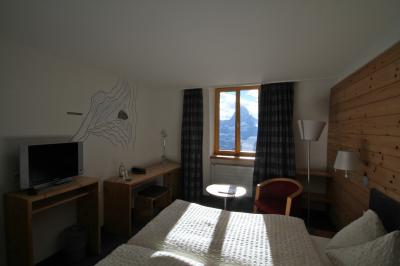 高台の上に立地し、テラスからはグリンデルワルトの谷越しにアイガーが一望。眺望に関しては言うことなしの最高の立地。テラスで、アイガーを眺めながらのんびり過ごす、贅沢な時間。