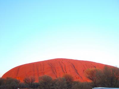 私たちの参加したサンライズツアーでは、太陽が登った直後のほんの数分間、燃えるような真っ赤なエアーズロックを見ることができた。太陽が登り始めてから刻々と赤くなり、ピークを迎えると、急速に落ち着いていく。本当に不思議な数分間だった。- 旅行時期