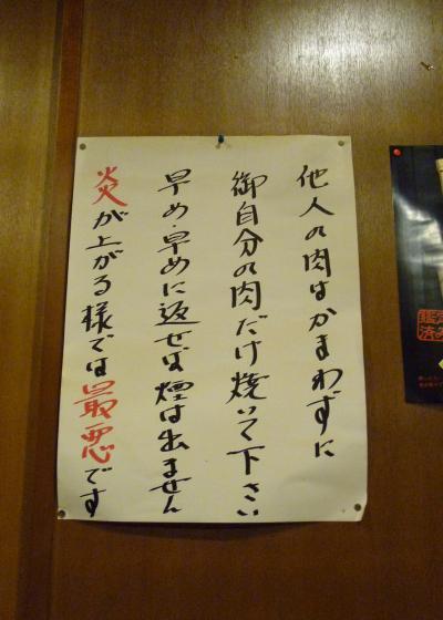 店内には焼肉の焼き方を注意する貼り紙と仙人のような名物店主がいるが、