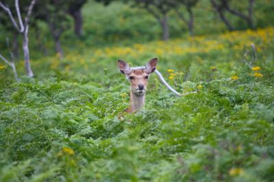 フレペの滝に通じる遊歩道の途中では、鹿や野鳥などの野生動物と出会える可能性大!